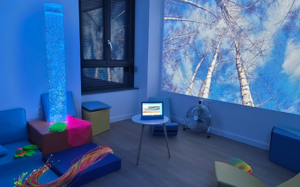 Der multisensorische Raum in Le Bélieu integriert die SHX-Technologie von Qinera. Dieses System ermöglicht die zeitgleiche Synchronisation aller Elemente im Raum – vibroakustische Stimulation, Projektionen, Beleuchtung, Ton und andere sensorische Effekte – und schafft so immersive Sinneserlebnisse, die reale Umgebungen wie einen Wald, das Meer oder andere Schauplätze nachbilden können. Diese Szenarien können an unterschiedliche Momente, Aktivitäten und individuelle Bedürfnisse angepasst werden.